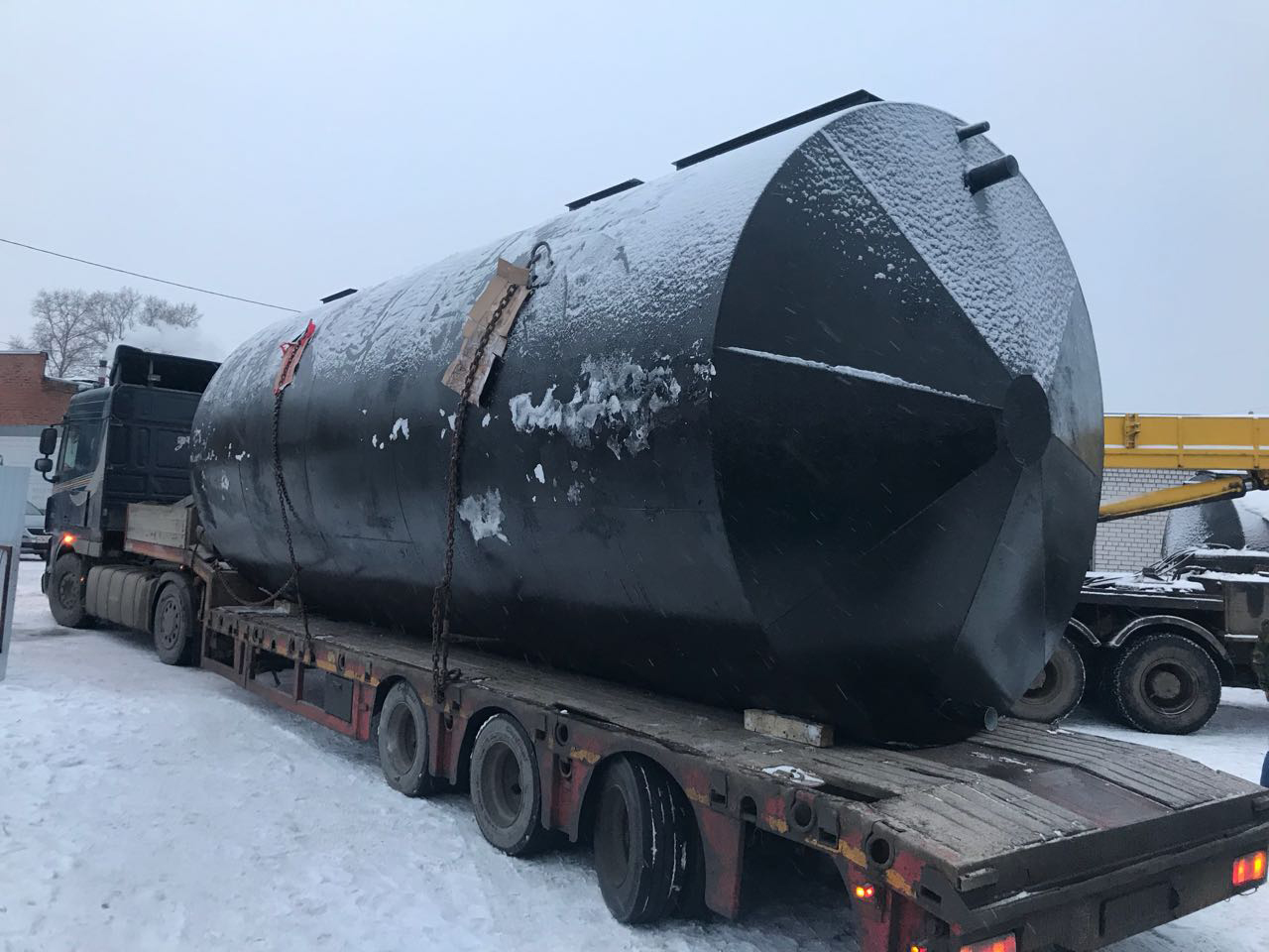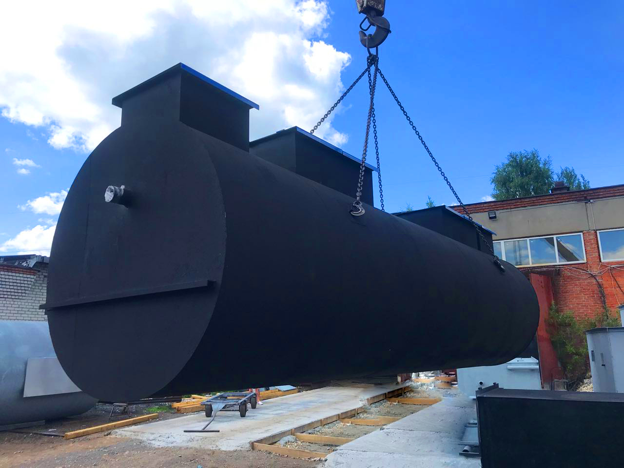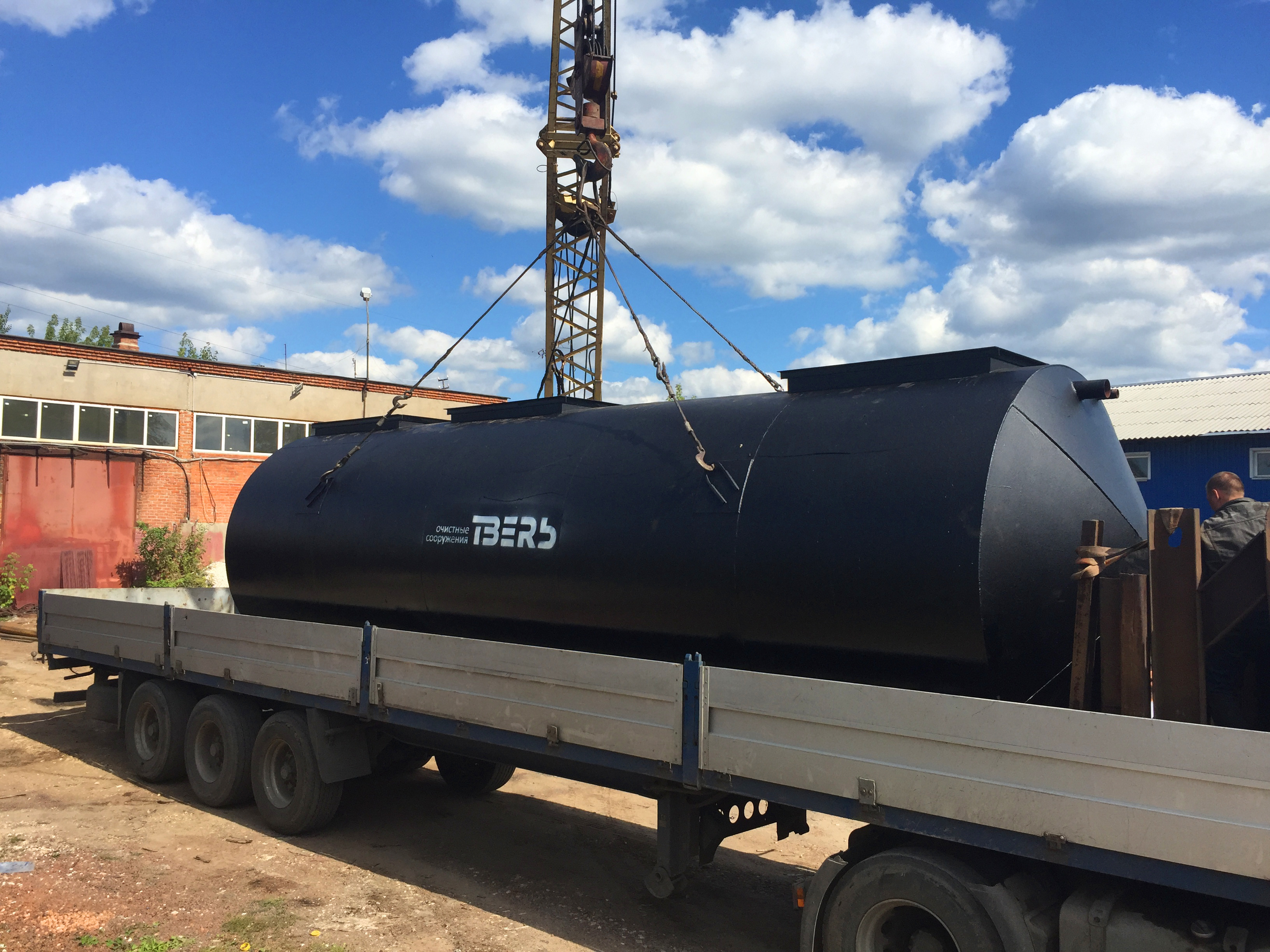 Габариты очистного сооружения: длина 6400 / диаметр 2400 / вес 4000 кг.